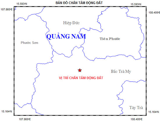 Trận động đất xảy ra tại vị trí 15,342 độ vĩ Bắc, 108,129 độ kinh Đông, ở độ sâu chấn tiêu khoảng 7,4 km, nằm trong khu vực thuỷ điện Sông Tranh 2, huyện Bắc Trà My, tỉnh Quảng Nam.