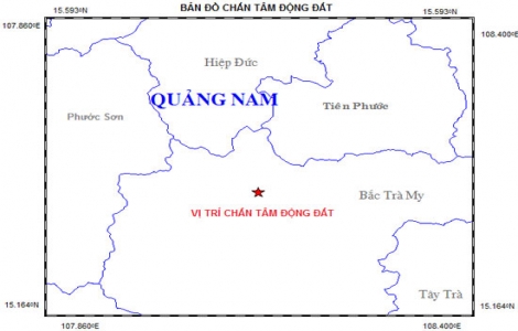 Trước đó, vào lúc 7 giờ 21 phút (giờ GMT), tức 14 giờ 21 phút (giờ Hà Nội) ngày 15-5, tại khu vực huyện Nông Sơn (tỉnh Quảng Nam) cũng xảy ra một trận động đất với cường độ 2,5 độ Richter, độ sâu chấn tiêu 10km.