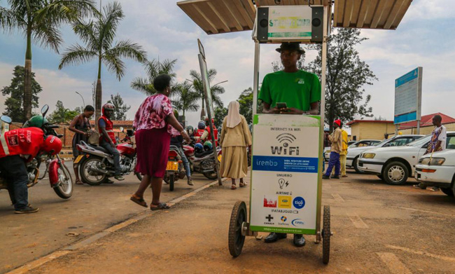 Quầy sạc pin điện thoại bằng năng lượng Mặt Trời tại châu Phi