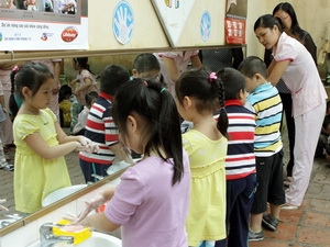 Bộ Y tế phát động chiến dịch rửa tay bằng xà phòng nhằm phòng, chống dịch bệnh tay chân miệng.