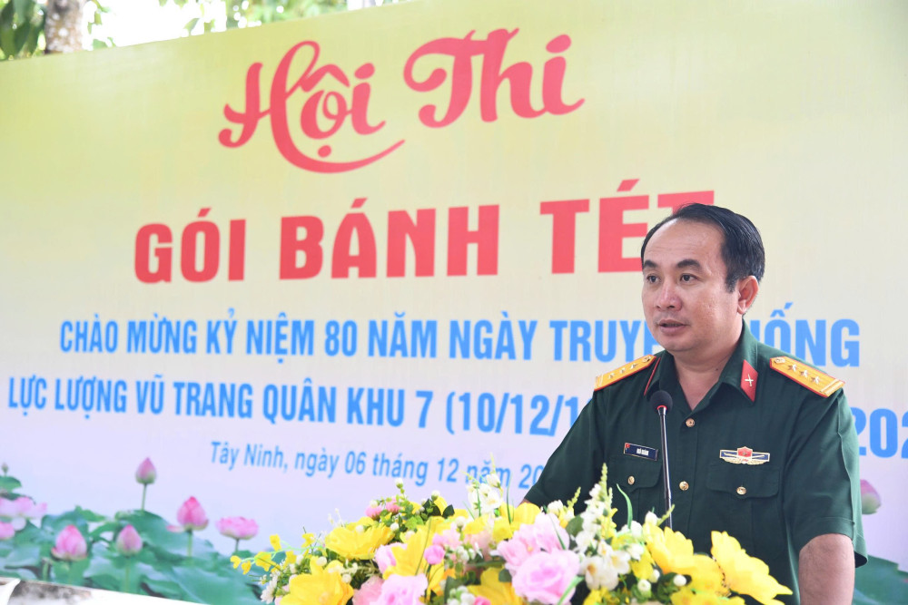 Phát biểu khai mạc hội thi, Thượng tá Ngô Khánh – Phó Chính ủy Bộ CHQS tỉnh Tây Ninh cho biết đây là hoạt động truyền thống, ý nghĩa nhằm thắt chặt tình đoàn kết quân – dân; góp phần giữ gìn văn hóa truyền thống của địa phương. Bên cạnh đó, qua việc cùng nhau gói bánh tét, các lực lượng và người dân có cơ hội giao lưu, tăng cường sự gắn bó trong thực hiện nhiệm vụ quốc phòng – an ninh.