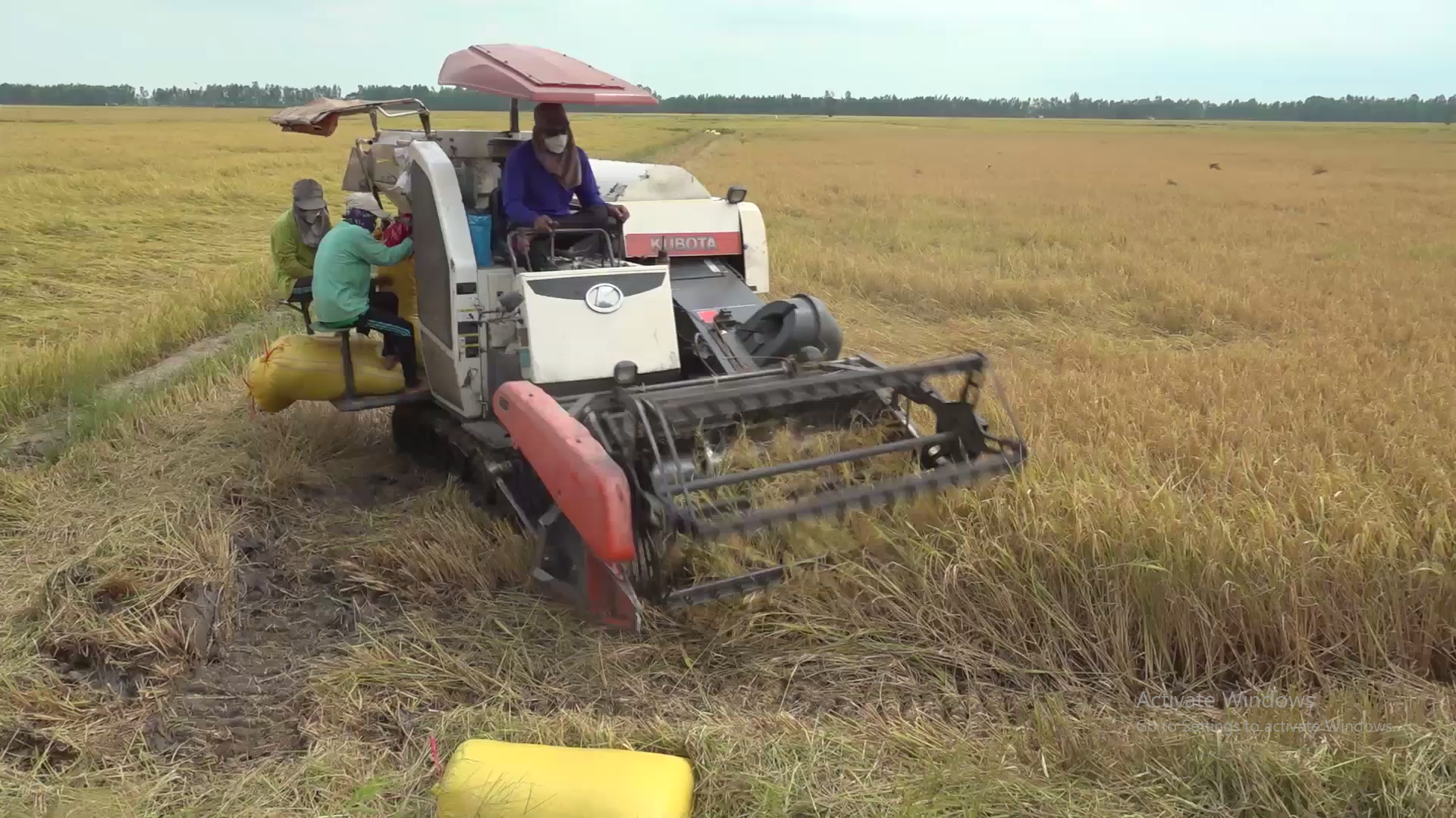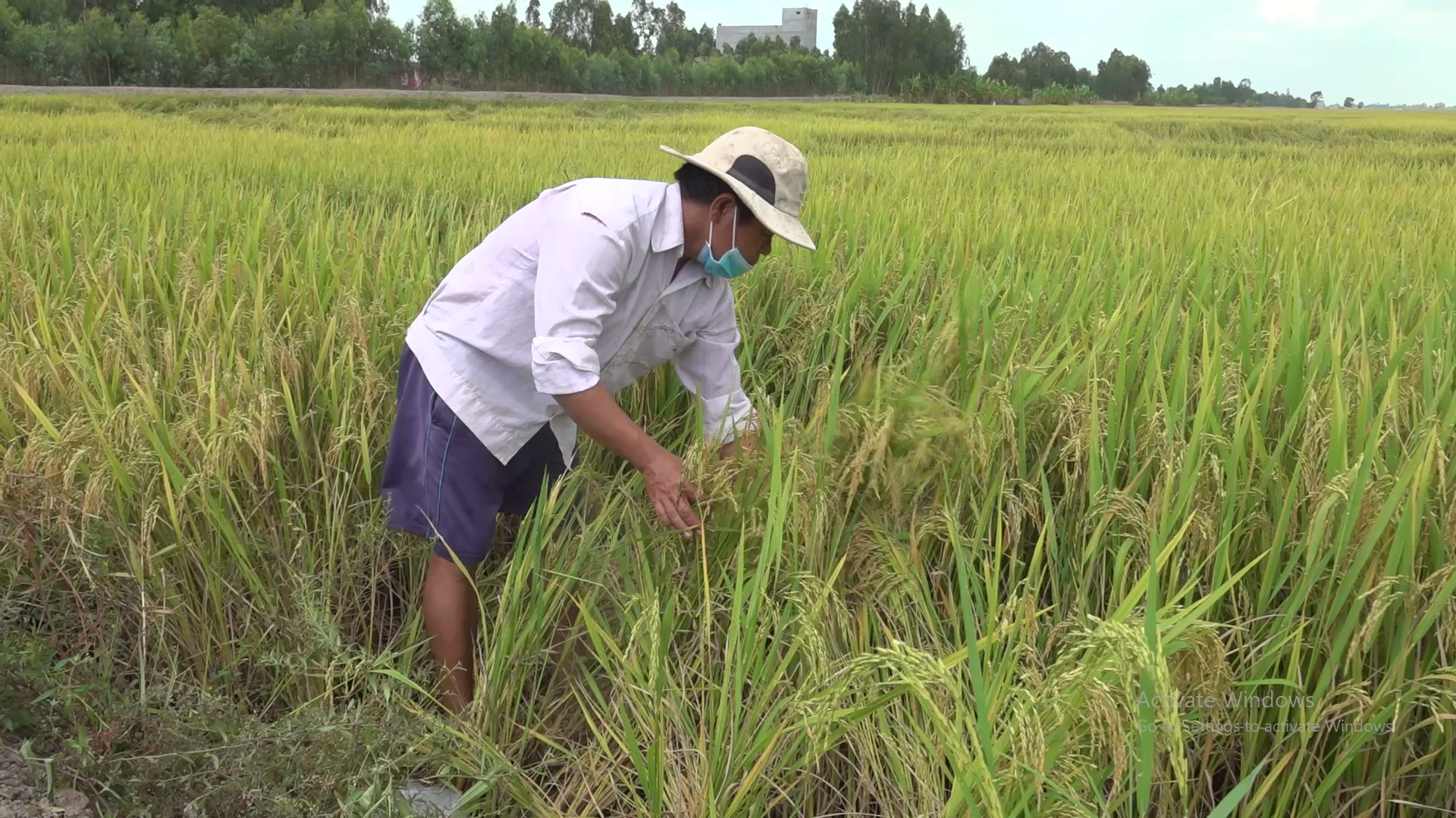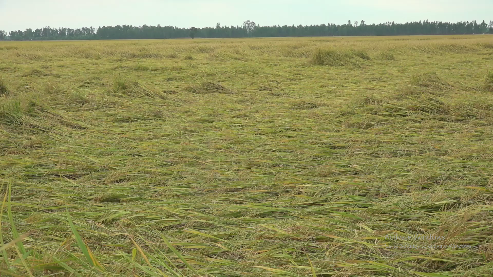 Tân Hưng lúa đông xuân bị đổ ngã gặp khó khăn khi thu hoạch