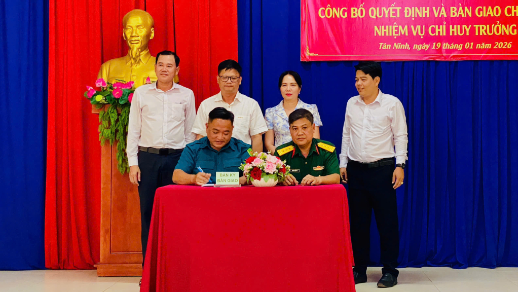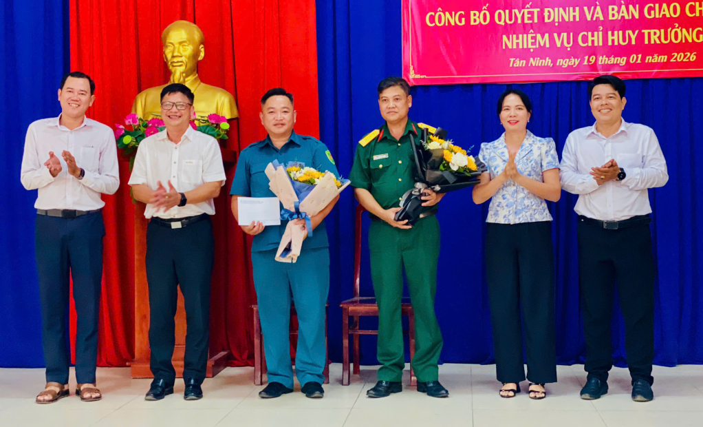 Tân Ninh: Bàn giao chức trách, nhiệm vụ Chỉ huy trưởng Ban Chỉ huy Quân sự phường