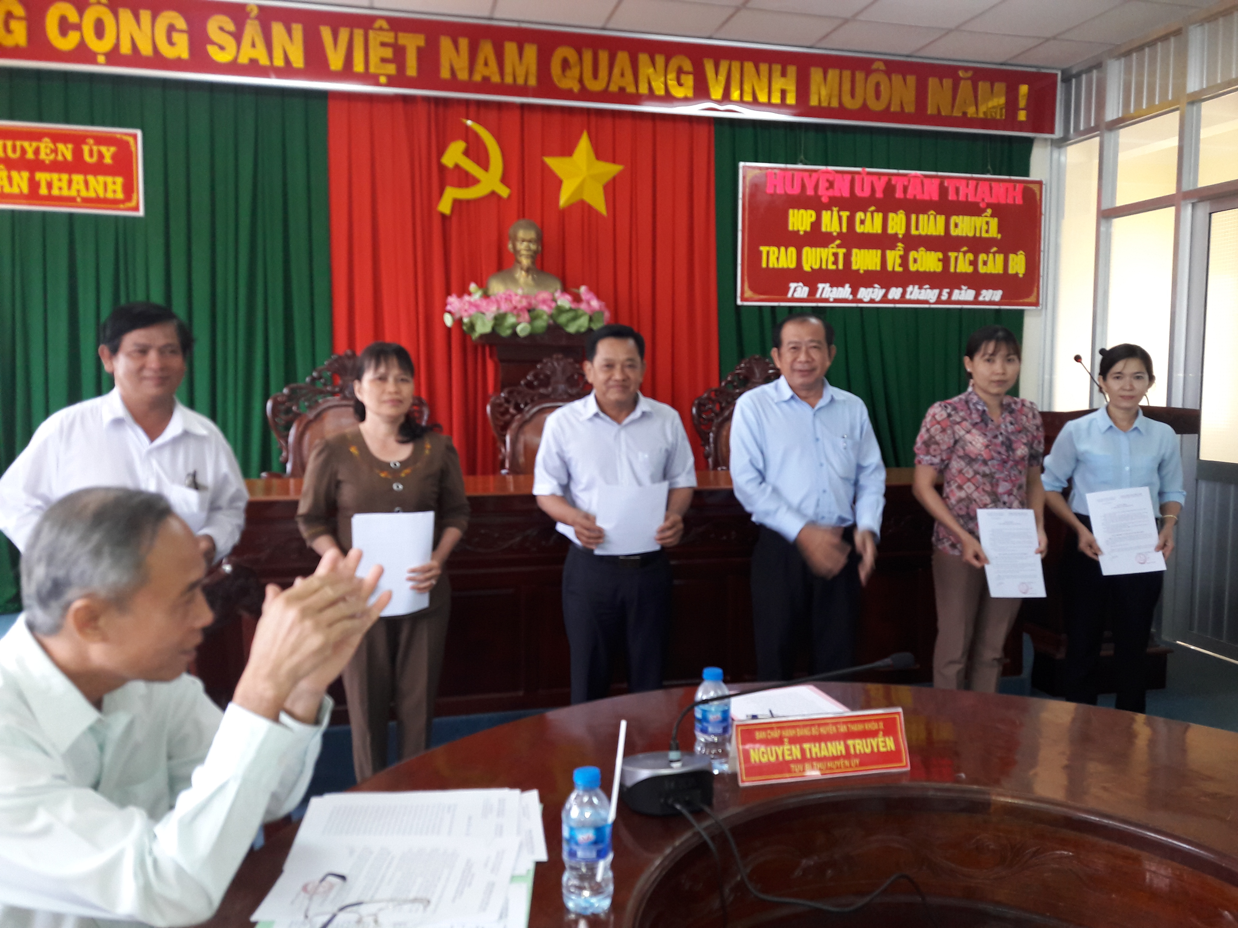 Tân Thạnh: Họp mặt cán bộ luân chuyển và trao quyết định về công tác cán bộ