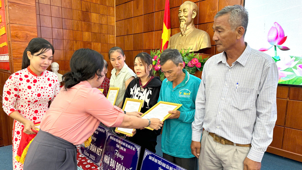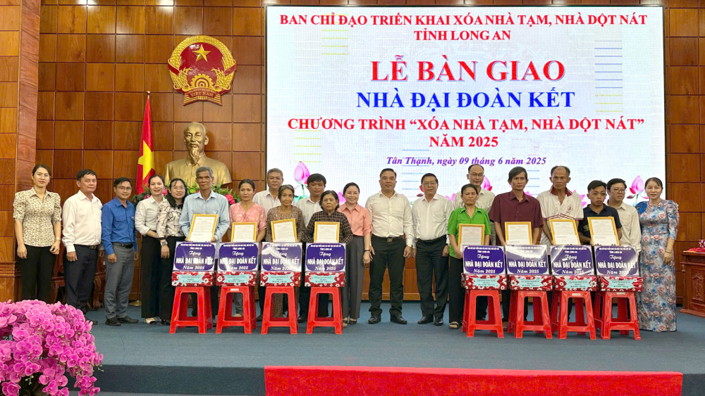 Tân Thạnh trao 58 căn nhà Đại đoàn kết trong chương trình xóa nhà tạm, nhà dột nát