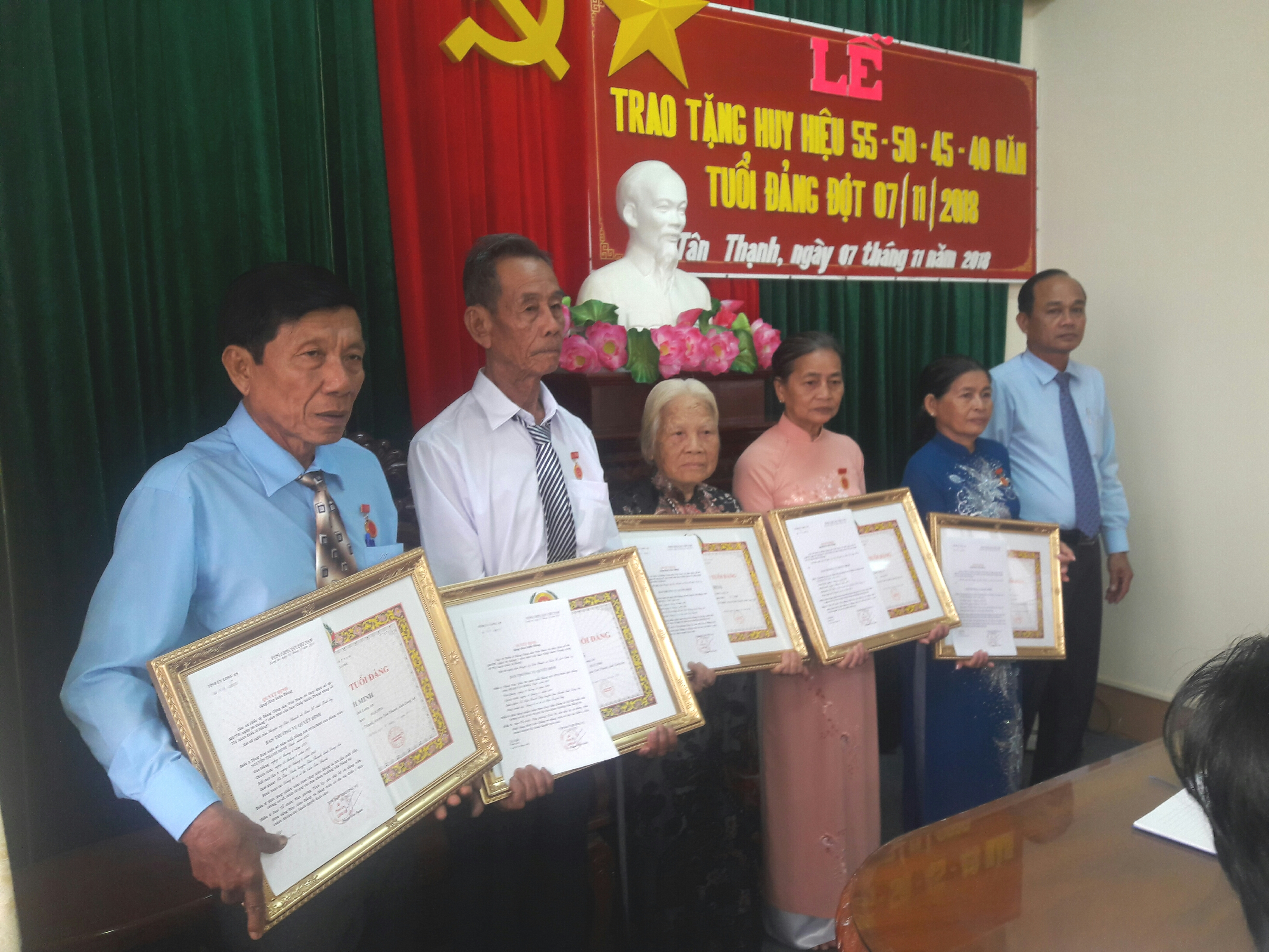 Tân Thạnh: Trao huy hiệu đảng cho các đảng viên cao niên