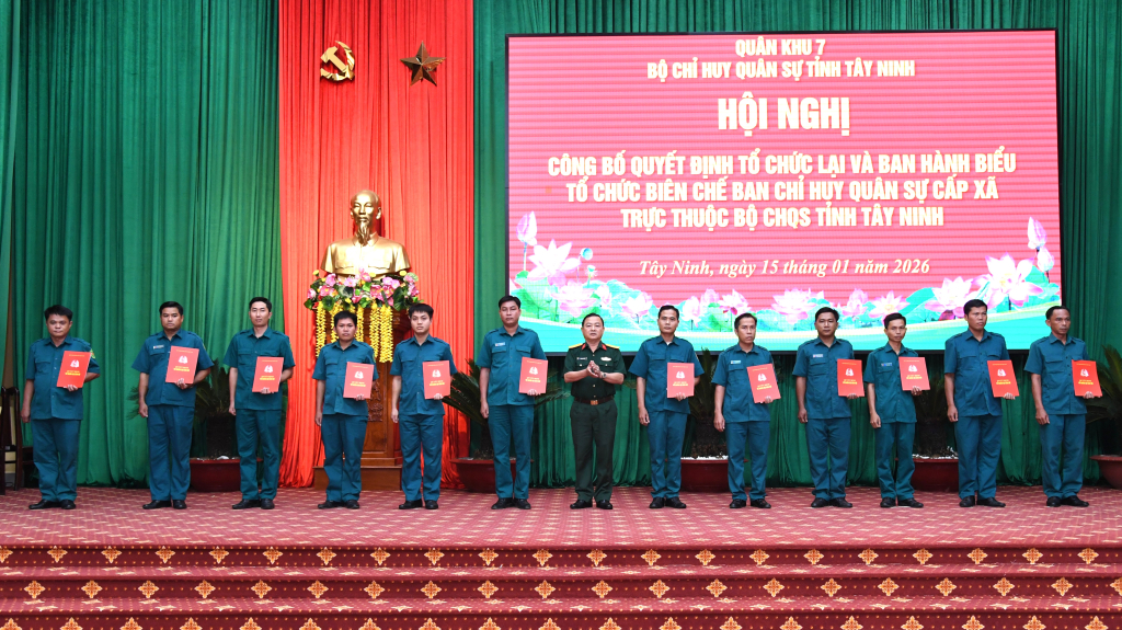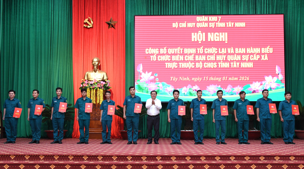 Tây Ninh: Công bố quyết định tổ chức lại Ban Chỉ huy Quân sự cấp xã, phường