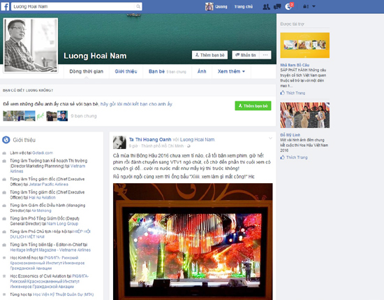 Một trong nhưng tài khoản Facebook có nhiều thông tin tốt, gợi mở nhiều vấn đề quản lý hàng không, giáo dục... được giới trí thức đánh giá cao.