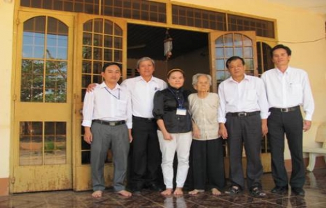 Ông Phạm Văn Tân, Bí thư Thị xã (thứ 2, từ phải qua) thăm mẹ VNAH Nguyễn Thị Trầm |