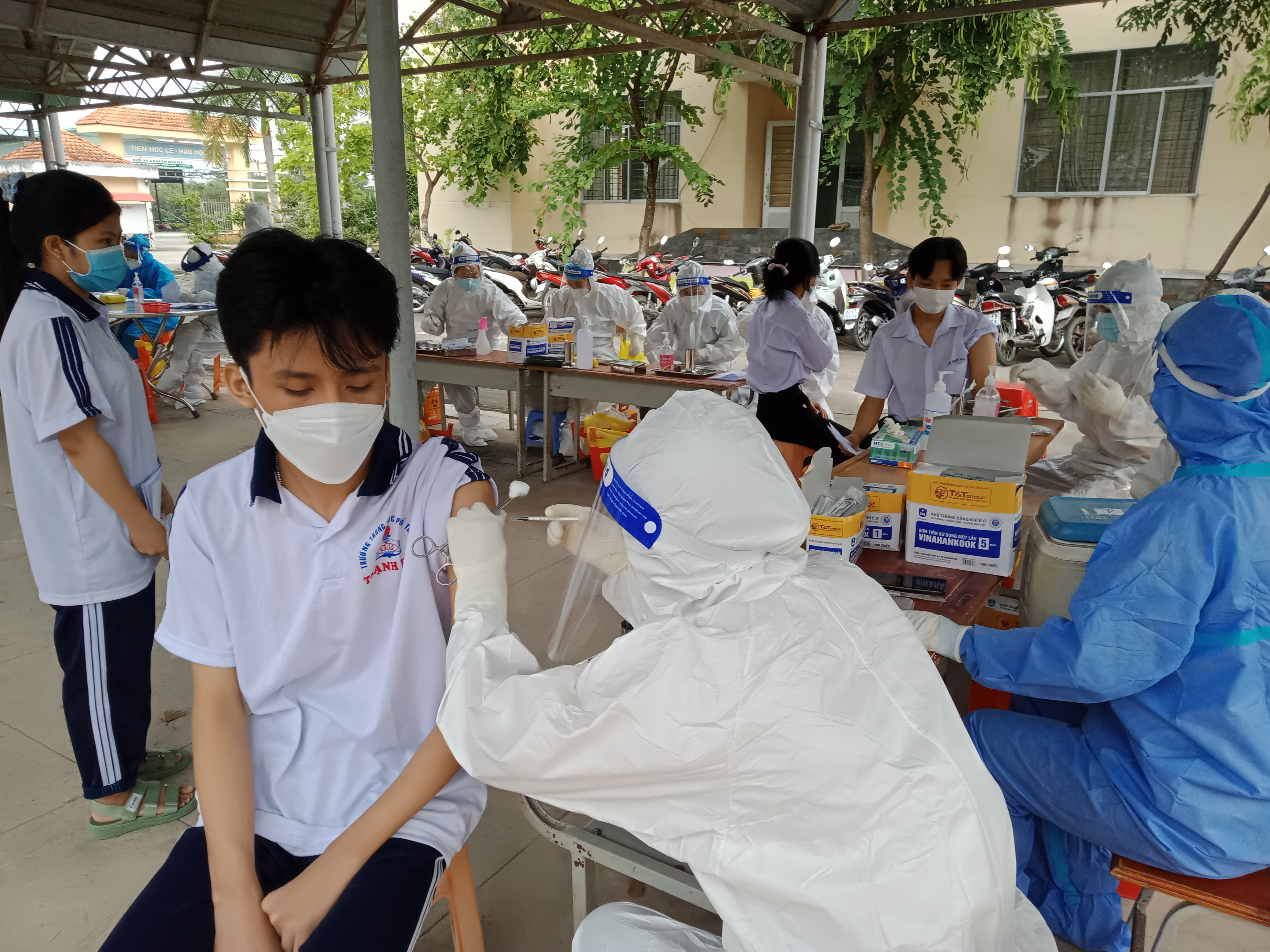 Thạnh Hóa tiêm vắc-xin phòng COVID-19 mũi 2 cho học sinh