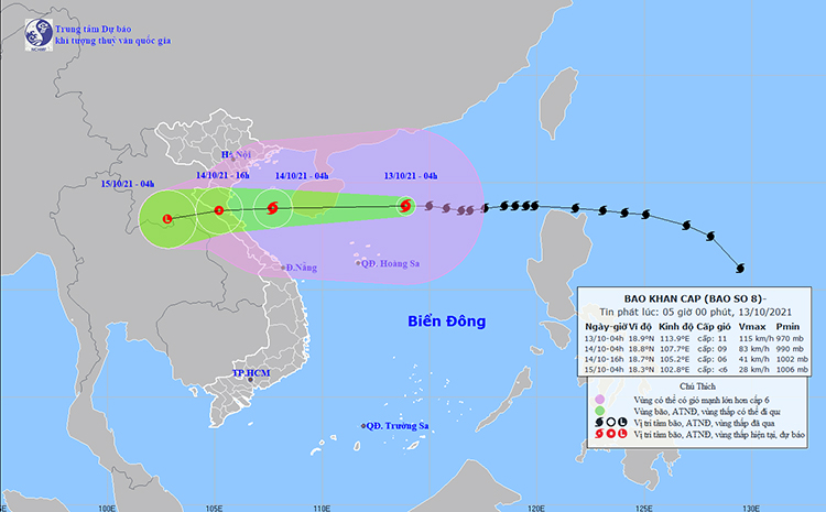 Thời tiết ngày 13/10: Bão số 8 gây mưa rất to từ Thanh Hóa đến Quảng Bình