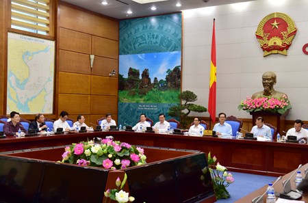 Các Phó Thủ tướng: Vũ Văn Ninh, Vũ Đức Đam và lãnh đạo một số bộ, ngành hữu quan tham dự cuộc họp.