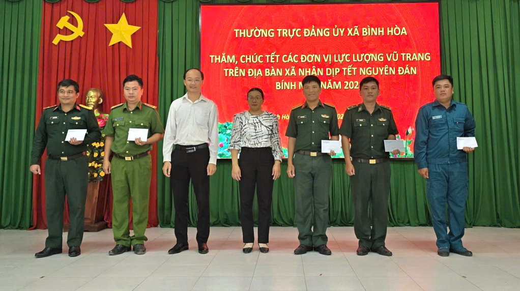 Thường trực Đảng ủy xã Bình Hòa thăm, chúc tết các đơn vị lực lượng vũ trang trên địa bàn