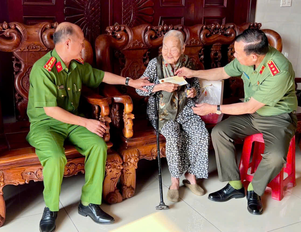Thượng tướng Lê Tấn Tới thăm, tặng quà Bà mẹ Việt Nam Anh hùng Lê Thị Lựu