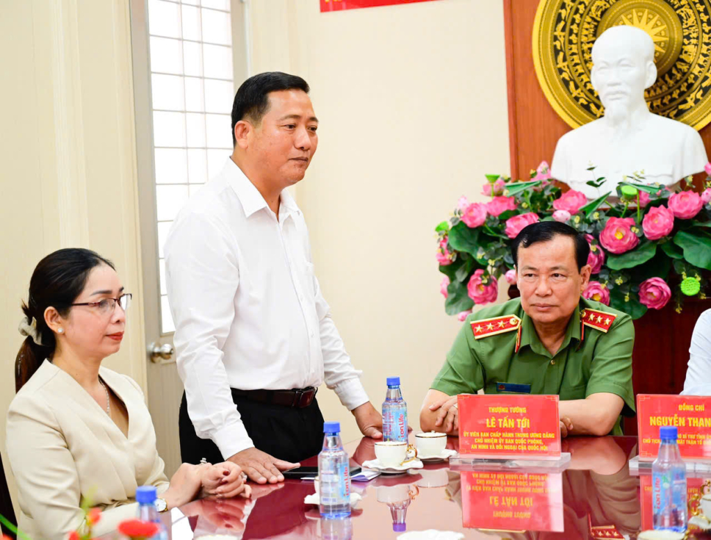 Thượng tướng Lê Tấn Tới và lãnh đạo tỉnh Tây Ninh nắm tình hình chăm lo tết, công tác chuẩn bị bầu cử tại xã Lương Hòa