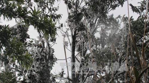 Băng tuyết phủ đặc tại khu vực Tháp Truyền hình Tam Đảo, huyện Tam Đảo có độ cao trên dưới 1.200m so với mặt nước biển, chiều 25-1-2016. Ảnh: Nguyễn Trọng Lịch - TTXVN