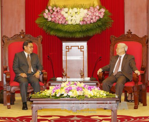 Tổng Bí thư tiếp Đoàn Ủy ban Trung ương Mặt trận Lào Xây dựng đất nước