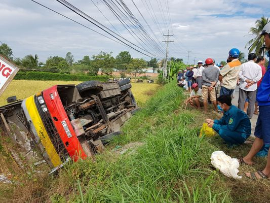 Tránh xe máy, xe buýt lật xuống ruộng sâu khiến 21 người thương vong