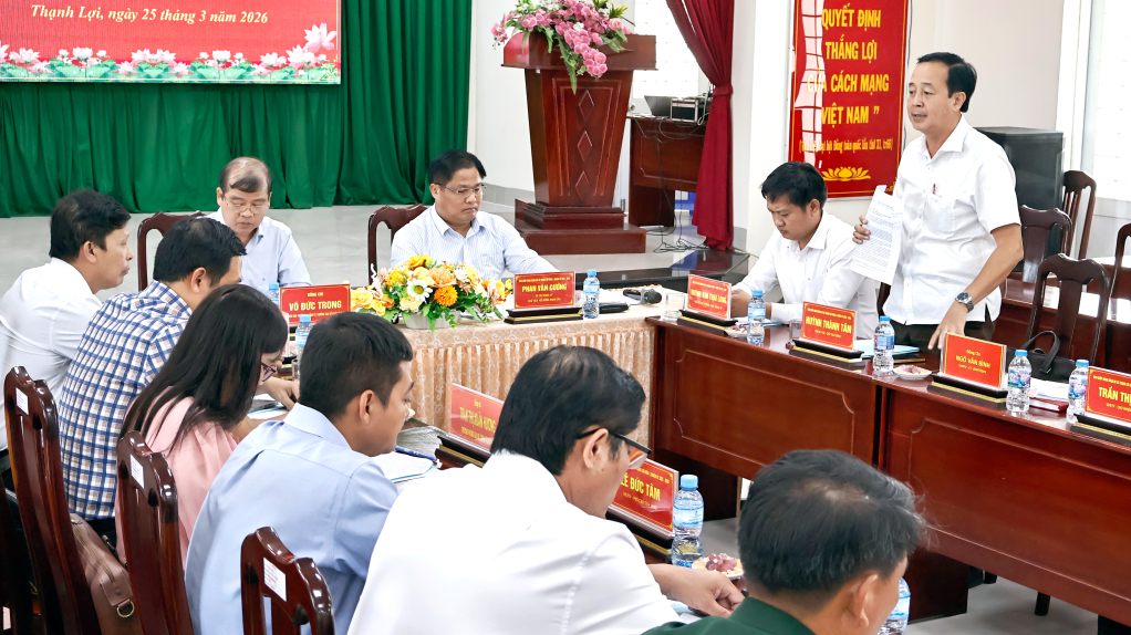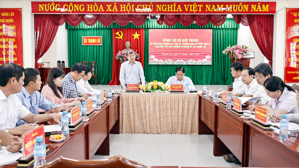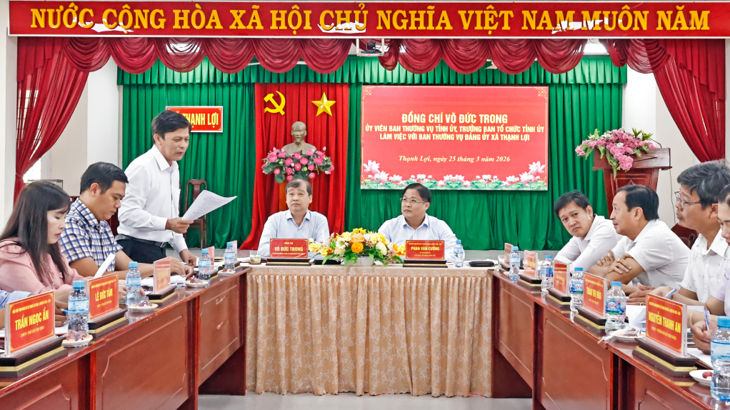 Trưởng ban Tổ chức Tỉnh ủy Võ Đức Trong làm việc với Đảng ủy xã Thạnh Lợi