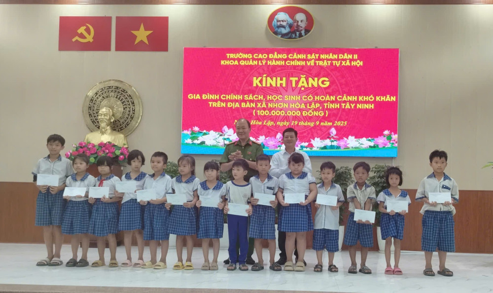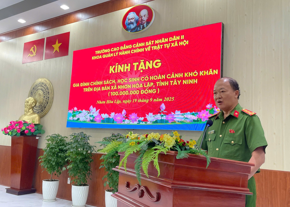 Trường Cao đẳng Cảnh sát Nhân dân II trao quà tại xã Nhơn Hòa Lập