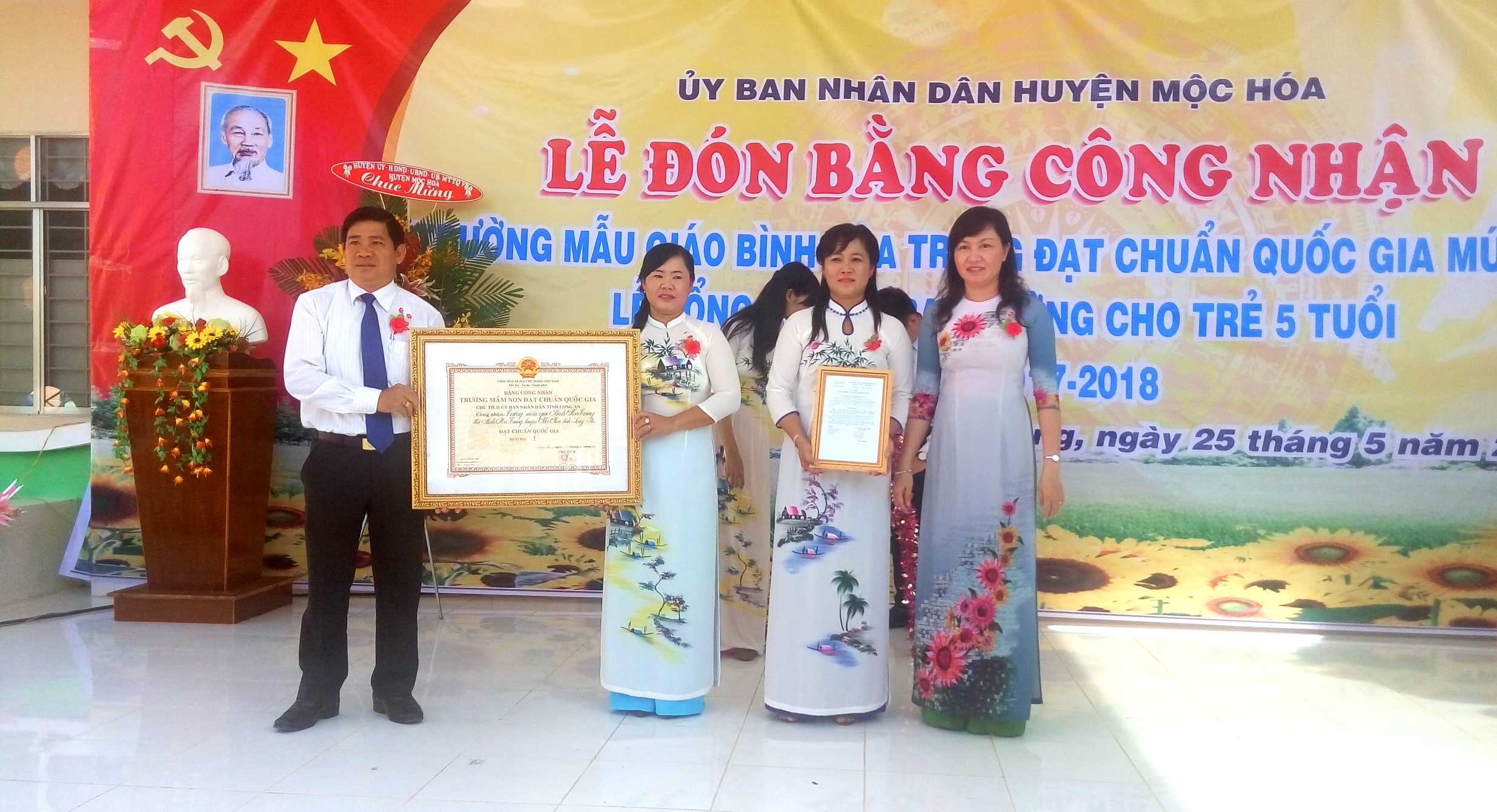 Trường Mẫu giáo Bình Hòa Trung đón bằng bằng công nhận trường đạt chuẩn quốc gia mức độ 1