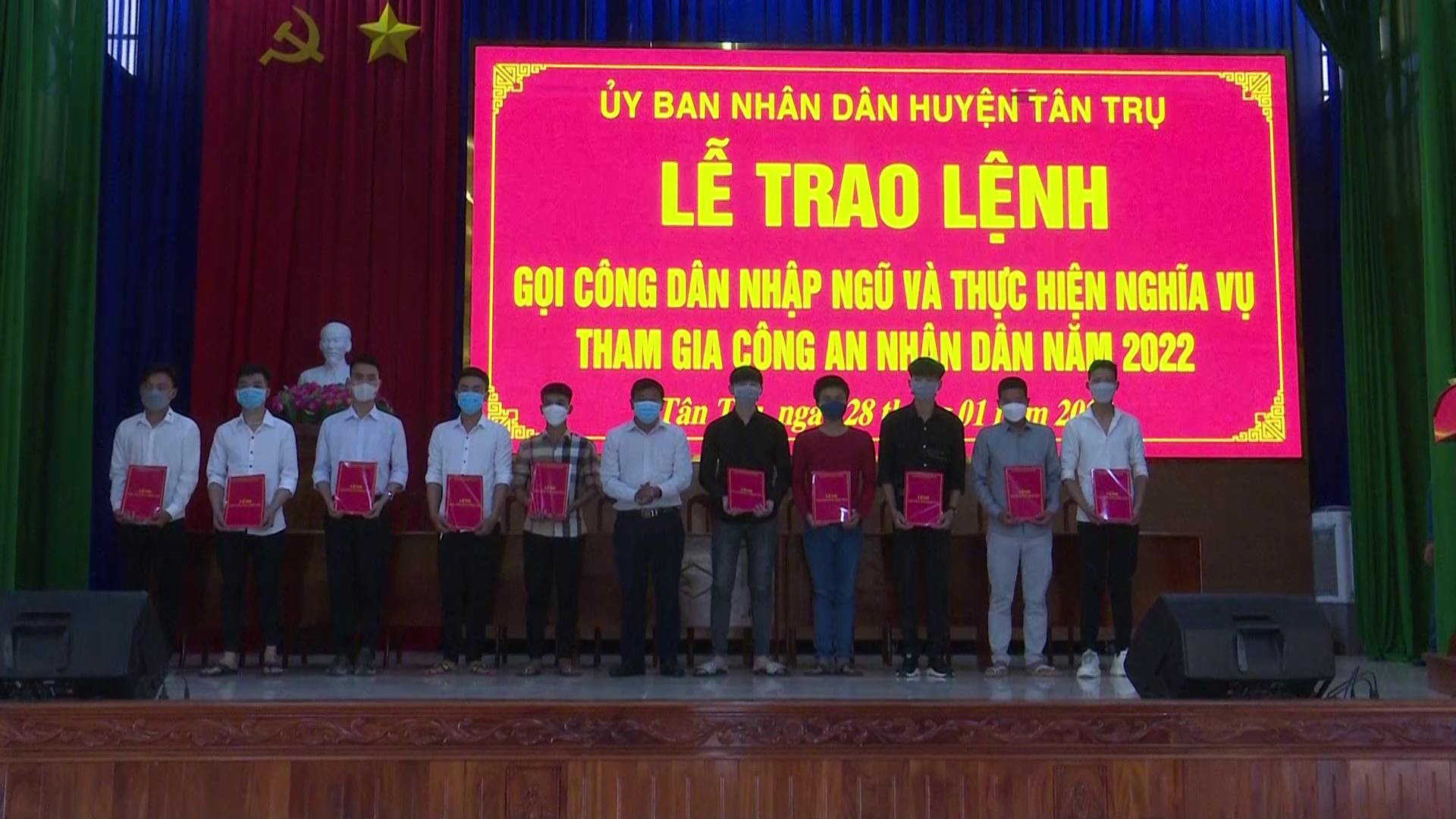 UBND huyện Tân Trụ tổ chức trao lệnh gọi công dân nhập ngũ năm 2022.