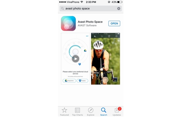 Bằng cách sử dụng ứng dụng Avast Photo Space, điện thoại của bạn giờ đây sẽ có nhiều không gian hơn nhiều để lưu các bức ảnh (và các ứng dụng khác). Bạn sẽ tiết kiệm được tiền của bằng cách sử dụng lưu trữ đám mây miễn phí. Bạn không cần phải khổ sở cân nhắc nên giữ lại bức ảnh nào và xóa bớt bức ảnh nào. Mọi bức ảnh trên điện thoại của bạn vẫn có thể được chia sẻ với những người bạn và người thân trong gia đình. Avast Photo Space hiện có thể tải về miễn phí từ App Store.