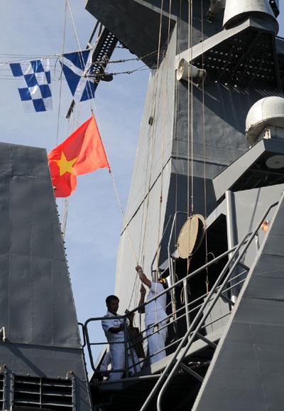 Kéo cờ Tổ quốc trên tàu Lý Thái Tổ |