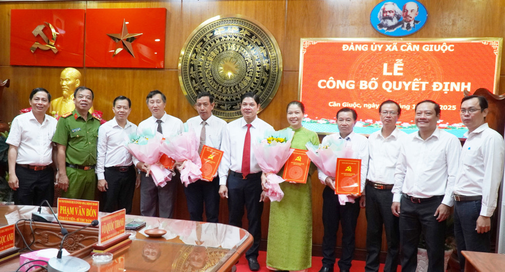 Tại buổi lễ, Trưởng ban Xây dựng Đảng Đảng ủy xã Cần Giuộc Nguyễn Công Danh công bố Quyết định của Ban Thường vụ Tỉnh ủy Tây Ninh về việc chỉ định bổ sung 2 đồng chí tham gia Ban Chấp hành Đảng bộ xã Cần Giuộc, nhiệm kỳ 2025-2030 gồm: đồng chí Trần Văn Đợi - Bí thư Chi bộ, Hiệu trưởng Trường THCS Long Hậu; Nguyễn Hoàng Thụy - Bí thư Chi bộ, Hiệu trưởng Trường Tiểu học Tân Kim.