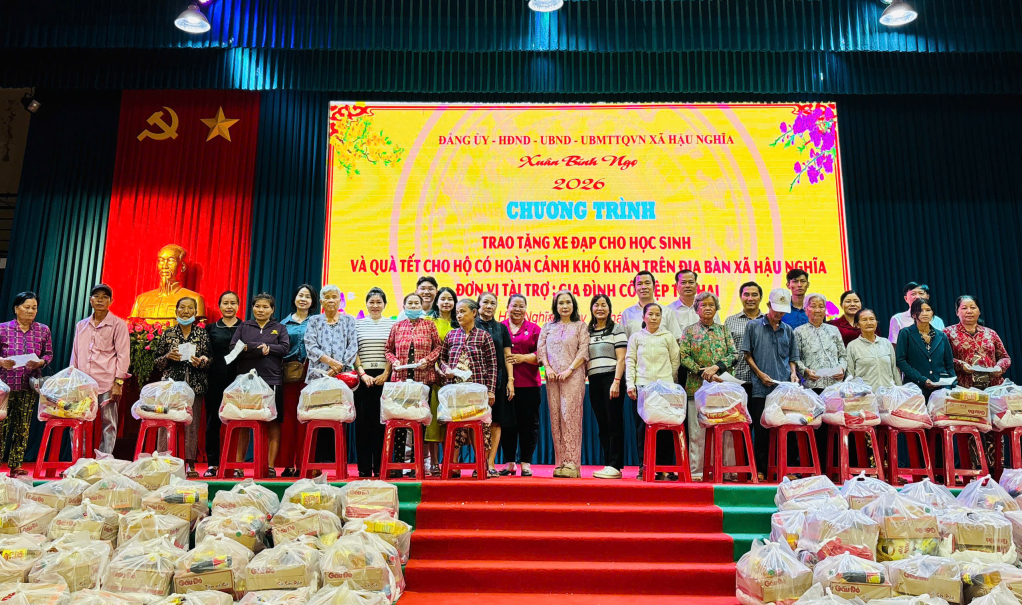 Xã Hậu Nghĩa: Tặng 85 xe đạp, 300 phần quà tết cho học sinh và người dân có hoàn cảnh khó khăn