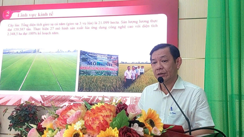 Tại buổi làm việc, Bí thư Đảng ủy, Chủ tịch HĐND xã Hậu Thạnh Hà Thanh Chì thông tin một số nội dung quan trọng như công tác xây dựng Đảng, cải cách hành chính, phát triển kinh tế nông nghiệp gắn với xây dựng nông thôn mới.