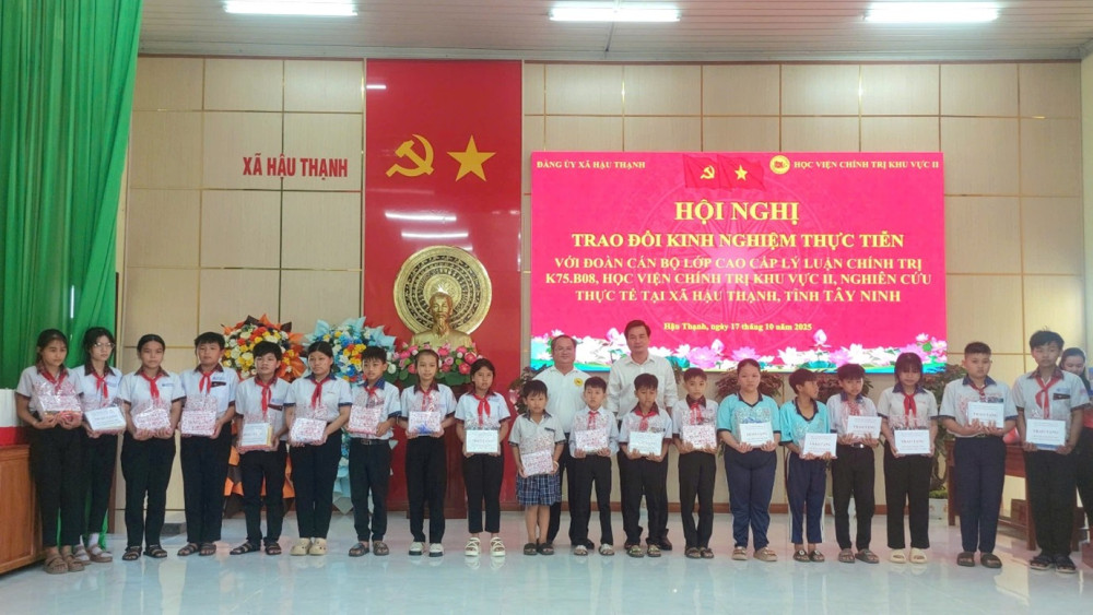 (BTNO) - Ngày 17/10, Đoàn cán bộ lớp Cao cấp Lý luận chính trị K75.B08, Học viện Chính trị khu vực II, do ông Phạm Tấn Xuân Tước – Giảng viên Học viện Chính trị khu vực II, Chủ nhiệm lớp làm trưởng đoàn, có chuyến thăm và làm việc tại UBND xã Hậu Thạnh, tỉnh Tây Ninh.