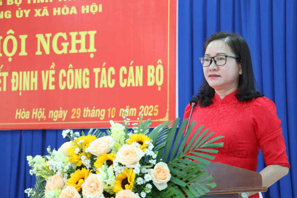 Phát biểu tại hội nghị, Bí thư Đảng ủy, Chủ tịch HĐND xã Hòa Hội Nguyễn Thị Thanh Sơn đề nghị, các cán bộ nhận nhiệm vụ mới tiếp tục phát huy tinh thần trách nhiệm trong công tác chuyên môn, giữ phẩm chất chính trị vững vàng, phát huy vai trò tiên phong, gương mẫu, đoàn kết cùng Ban Chấp hành Đảng bộ xã lãnh đạo, thực hiện thắng lợi Nghị quyết Đại hội đại biểu Đảng bộ xã nhiệm kỳ 2025-2030, đưa xã Hòa Hội phát triển nhanh, bền vững./.