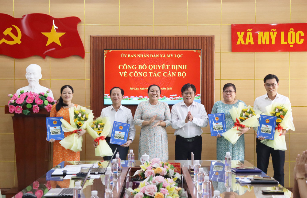 Theo đó, UBND xã có Quyết định cho thôi kiêm nhiệm chức vụ Giám đốc Trung tâm Phục vụ hành chính công xã Mỹ Lộc đối với ông Phạm Minh Tuấn - Phó Chủ tịch UBND xã; bổ nhiệm bà Đặng Thị Mỹ Phương – Phó Giám đốc Trung tâm Phục vụ hành chính công xã Mỹ Lộc giữ chức vụ Giám đốc Trung tâm Phục vụ hành chính công xã; điều động ông Nguyễn Trường Tân – Phó Trưởng phòng Kinh tế xã Mỹ Lộc, đến Trung tâm Cung ứng dịch vụ sự nghiệp công xã nhận công tác, bổ nhiệm giữ chức vụ Phó Giám đốc; biệt phái bà Huỳnh Kim Nhung – chuyên viên Trung tâm Phục vụ hành chính công xã Mỹ Lộc, đến hỗ trợ công tác tại Phòng Văn hóa – Xã hội xã.