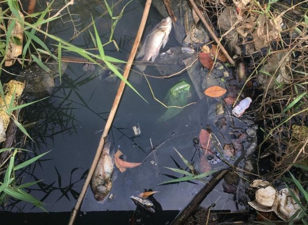 Cá ở kênh chết nổi trên mặt nước