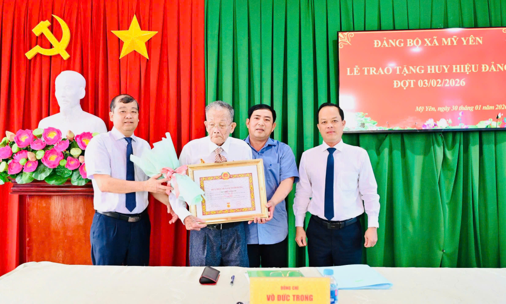 Xã Mỹ Yên: Trao tặng Huy hiệu Đảng cho các đảng viên
