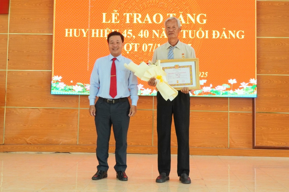 Đợt này, Đảng bộ xã có 3 đảng viên được tặng Huy hiệu Đảng. Trong đó, đảng viên Thái Văn Ô, Chi bộ ấp Long Thạnh được tặng Huy hiệu 45 năm tuổi Đảng; 2 đảng viên Lê Văn Tượng, Chi bộ ấp Trong và Đoàn Văn Sáu, Chi bộ ấp Vĩnh Phước được tặng Huy hiệu 40 năm tuổi Đảng.