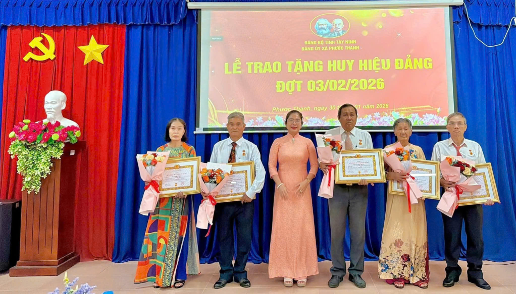 Xã Phước Thạnh trao tặng Huy hiệu Đảng
