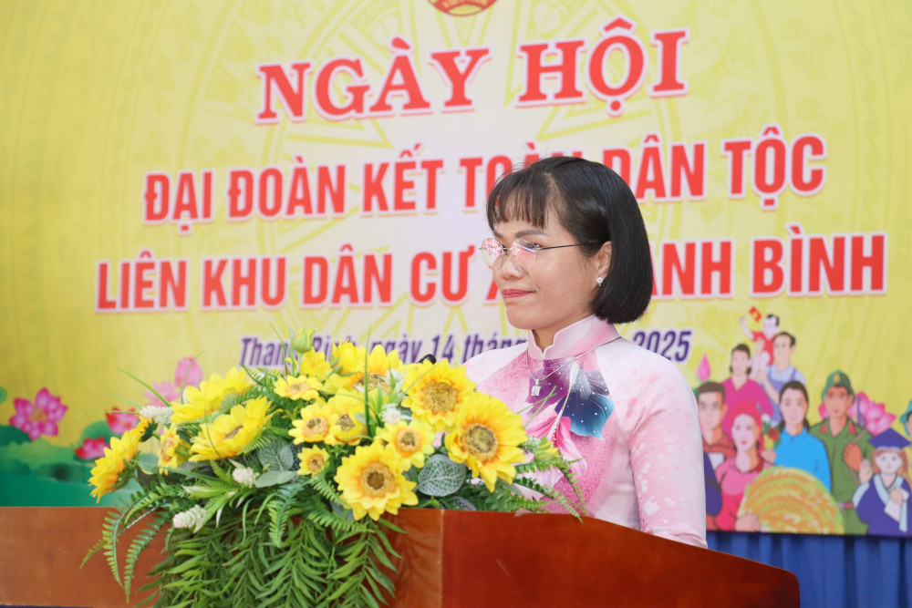 Phó Bí thư Thường trực Đảng ủy, Chủ tịch UBMTTQ Việt Nam xã Thạnh Bình Trần Thị Ánh Tuyết biểu dương tinh thần đoàn kết và những kết quả đạt được của Liên khu dân cư các ấp đạt được trong năm qua; đề nghị Ban Công tác Mặt trận các ấp chú trọng thực hiện các cuộc vận động, phong trào thi đua và phát huy tốt hơn nữa việc chăm lo cho người nghèo, bảo đảm công tác an sinh xã hội; kêu gọi người dân các ấp giữ tinh thần đoàn kết trong Nhân dân, chung tay xây dựng xã Thạnh Bình ngày càng phát triển, văn minh.
