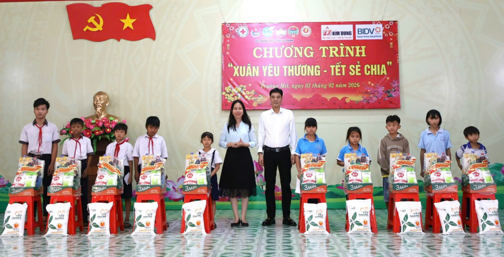 Xã Truông Mít tặng quà tết cho gia đình chính sách và người bị tai nạn giao thông