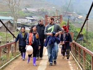 Du khách quốc tế đến xã Lao Chải. |