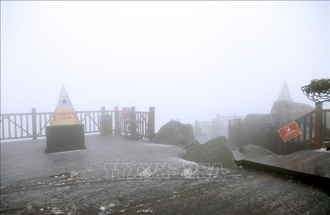 Xuất hiện mưa lẫn tuyết bao phủ đỉnh Fansipan