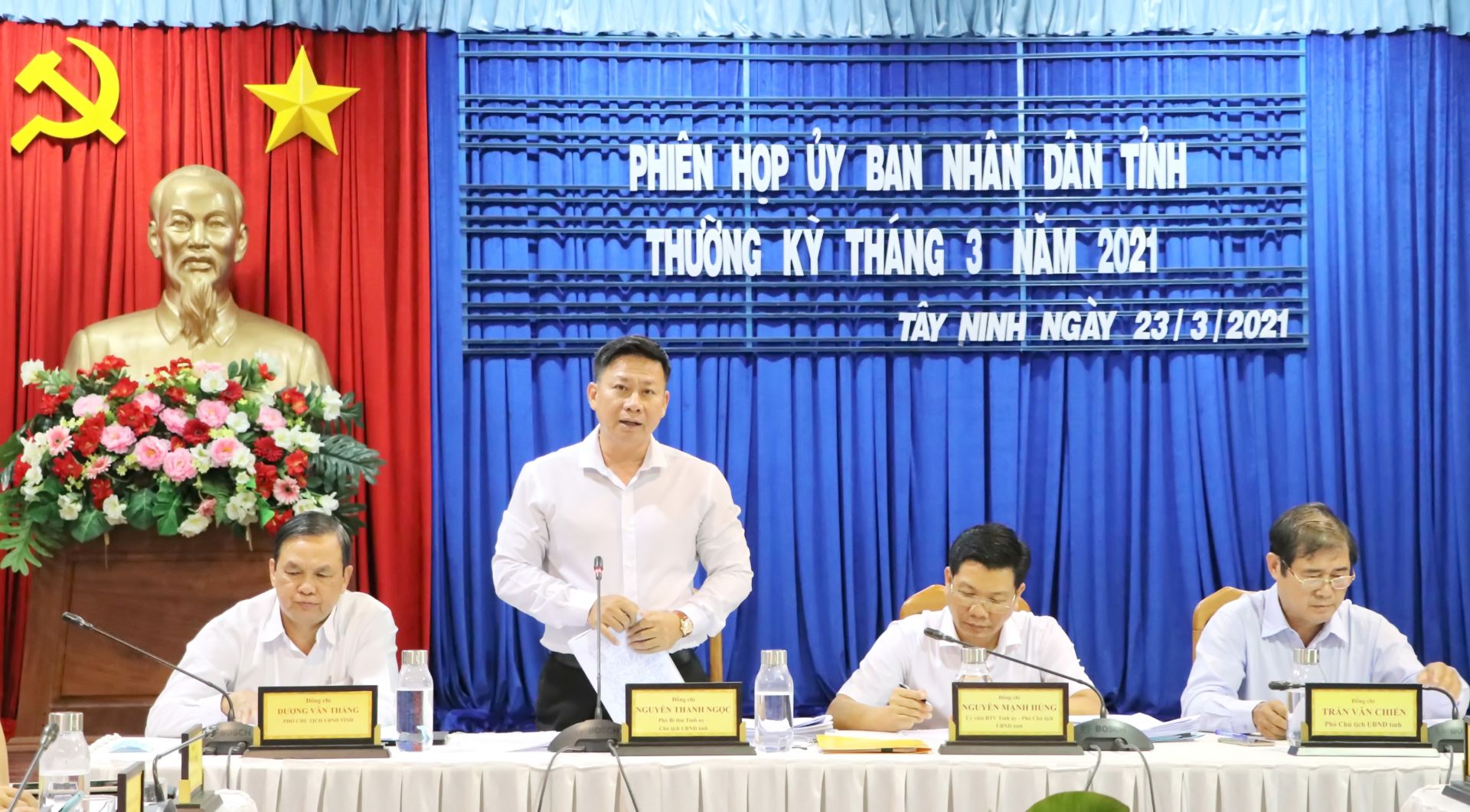 Ngày 23.3, UBND tỉnh tổ chức phiên họp thường kỳ tháng 3, cho ý kiến về một số nội dung quan trọng. Phiên họp do ông Nguyễn Thanh Ngọc- Chủ tịch UBND tỉnh và các Phó Chủ tịch UBND tỉnh Nguyễn Mạnh Hùng, Trần Văn Chiến, Dương Văn Thắng đồng chủ trì.
