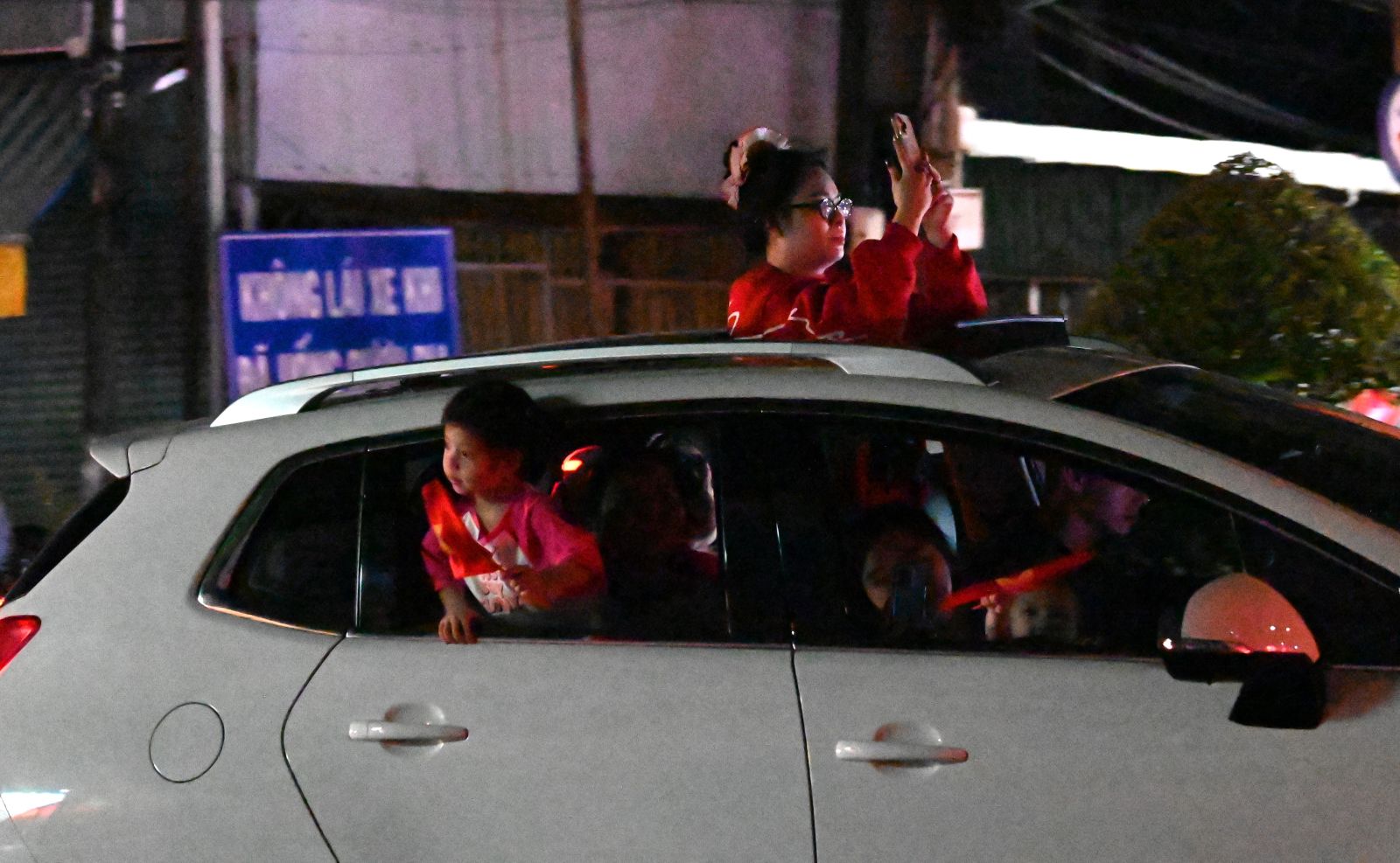 Một vài người quá khích đứng giữa dòng xe cộ đông nghẹt để vẫy cờ Tổ quốc. Có người điều khiển cả xe lôi máy tự chế chở người thân ra đường giữa cơn “bão”. Một vài trẻ em dùng nắp nồi làm dụng cụ âm nhạc để bày tỏ niềm vui.
