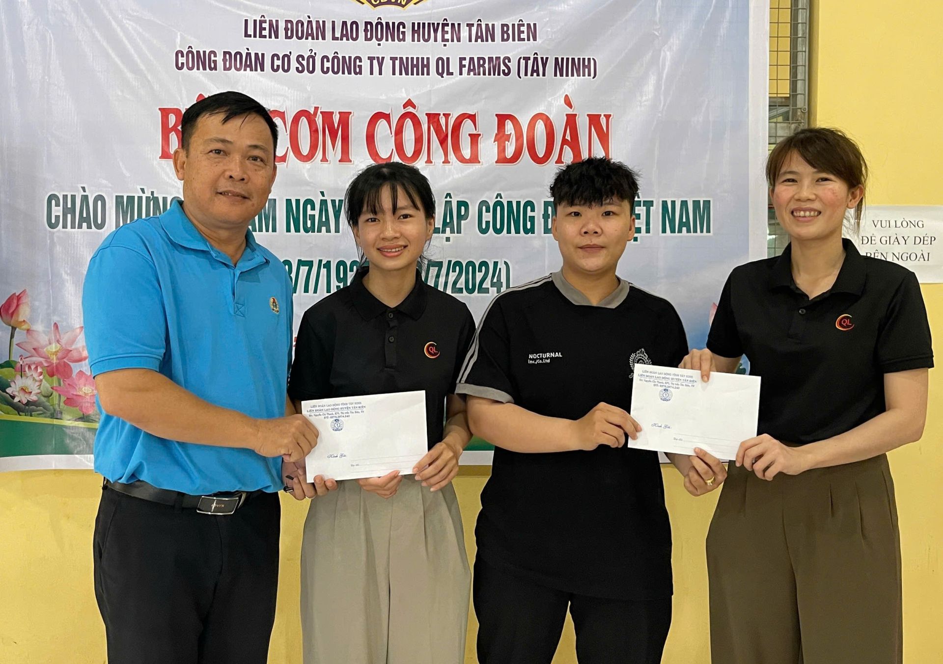 Dịp này, LĐLĐ huyện trao 2 suất quà (500 ngàn đồng/ suất) cho đoàn viên công đoàn Công ty TNHH QL Farms Tây Ninh có hoàn cảnh khó khăn.