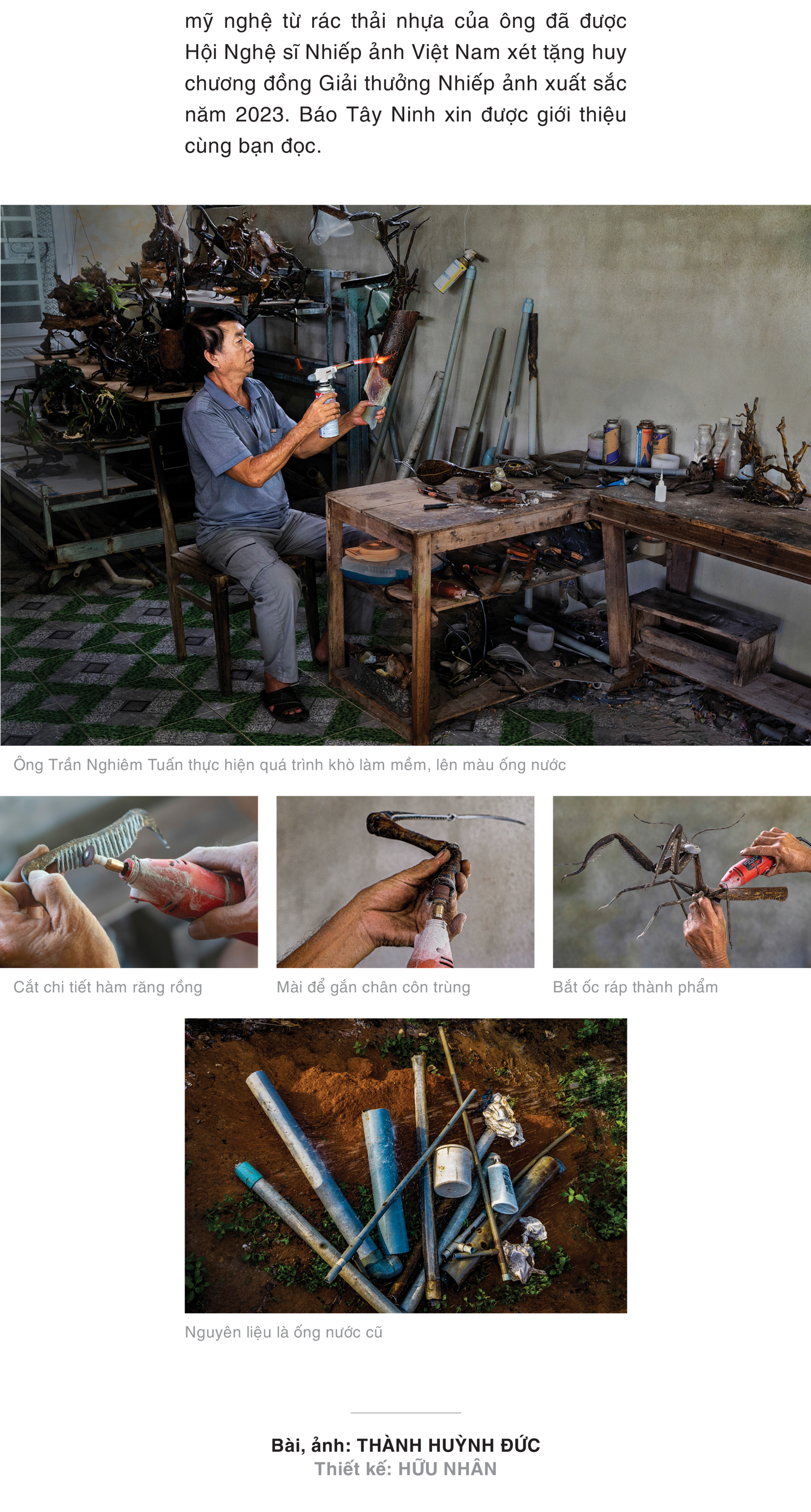 Từ những rác thải nhựa như ống nước bằng nhựa, vỏ bình bột giặt, chai nước suối, ly nhựa… ông Trần Nghiêm Tuấn, sinh năm 1963, ngụ khu phố 2, thị trấn huyện Tân Biên đã chế tác những sản phẩm thủ công mỹ nghệ độc, lạ…