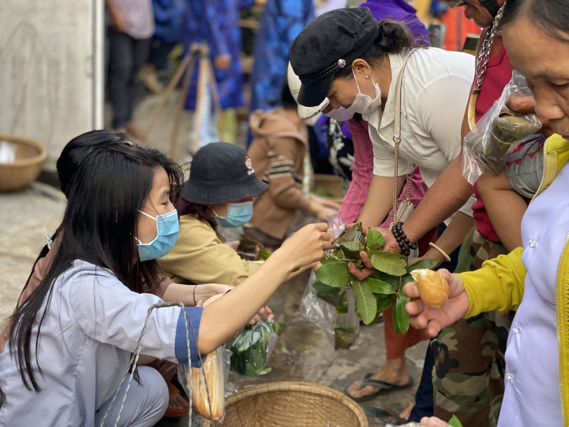 Phiên chợ đặc biệt, chỉ “lấy lá làm tiền” mua thức ăn.