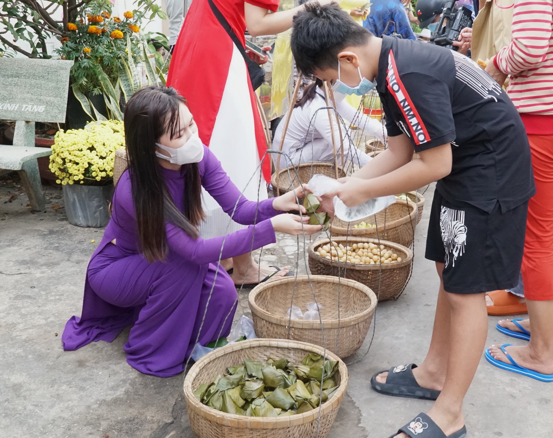 Người khó khăn được giúp đỡ trong phiên chợ lá.