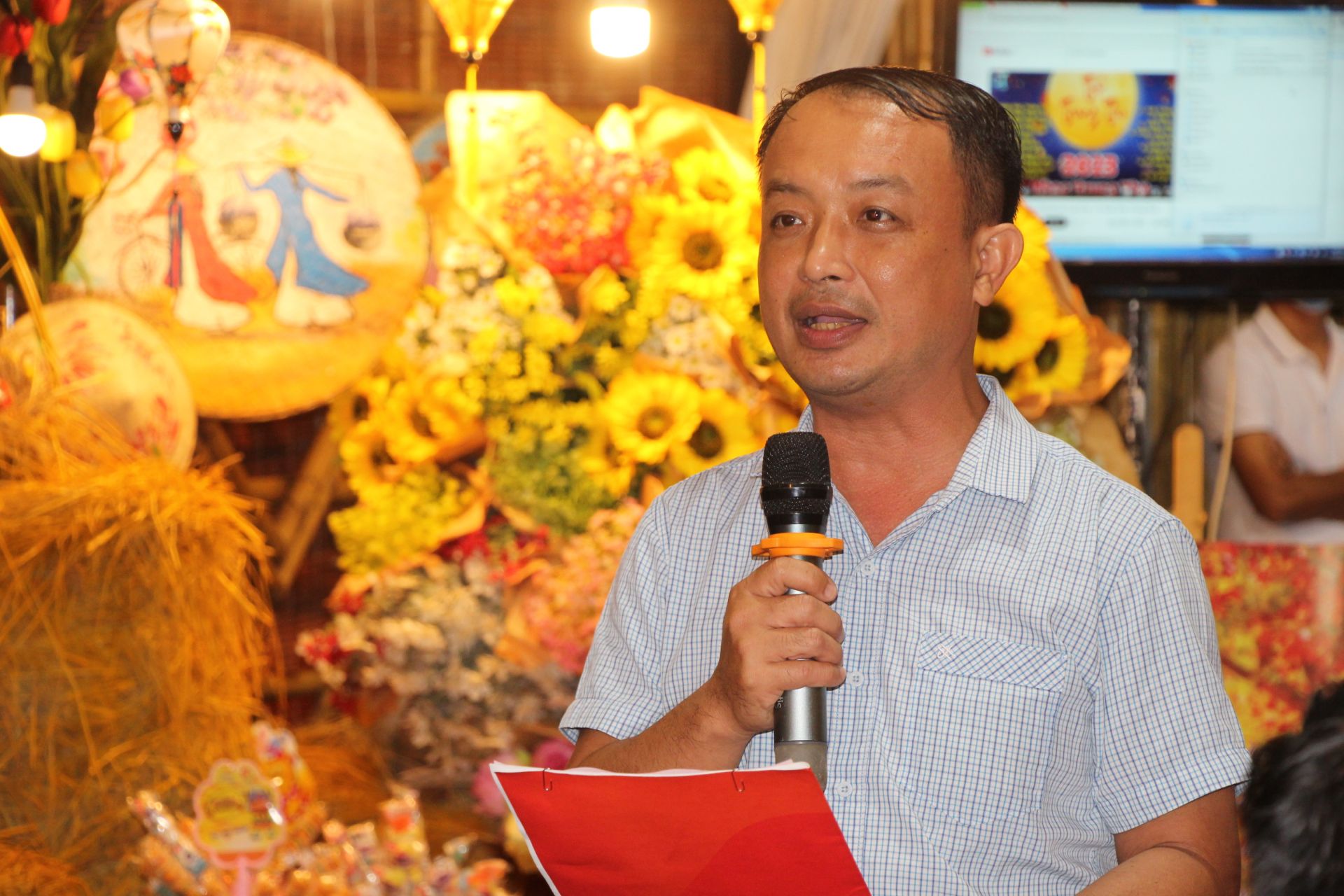 Ông Nguyễn Đức Hảo- Phó Chủ tịch UBND Thị xã đọc thư chúc Tết Trung thu.
