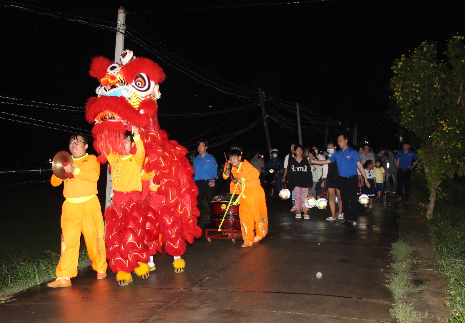 Các em tham gia rước đèn trong tiếng trống lân rộn rã.